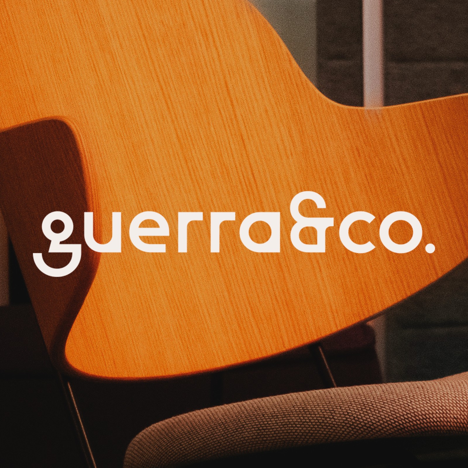Guerra&Co. brings interior design branding to life with organic letterforms, warm terracotta tones, and furniture-inspired icons by Studio Mateus Araújo.
