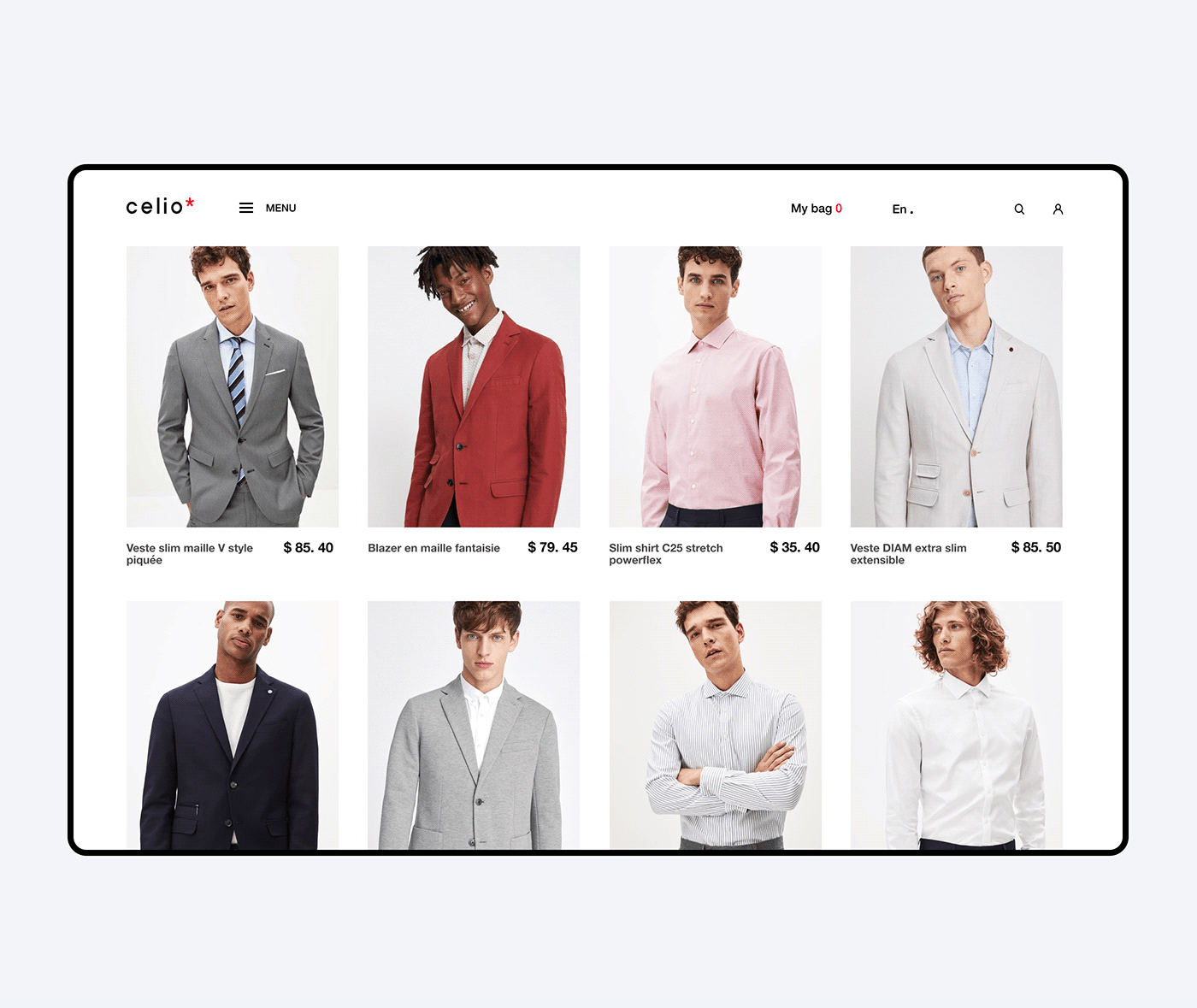 In constant expansion, Celio* is present in more than 50 countries with more than 1100 stores. The brand offers an elegant and cool urban fashion through a wide choice of clothes and accessories for men created by its integrated style office, responding to every desire and every moment of life. So the main task is to provide maximal friendly structure for the e-commerce part and combine the grammar structure with the new fresh UI concept. “I am a Celio* user and I wish to interact with the brand’s web production like this” says Set Sargsyan